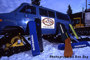 January 12, 2004 Venture Snowboards photo shoot with San Juan Ski Company. Our thanks to Lisa and her crew for working with us. Photography by Ben Eng. You can find Ben residing Durango, Colorado or on the web at www.benengphotography.com.